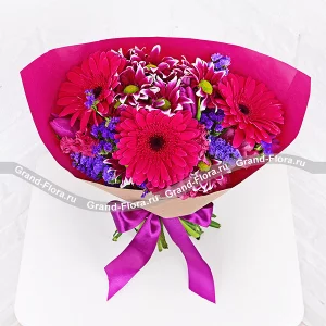 Влюбленное сердце - композиция на оазисе с кустовой розой и орхидеей